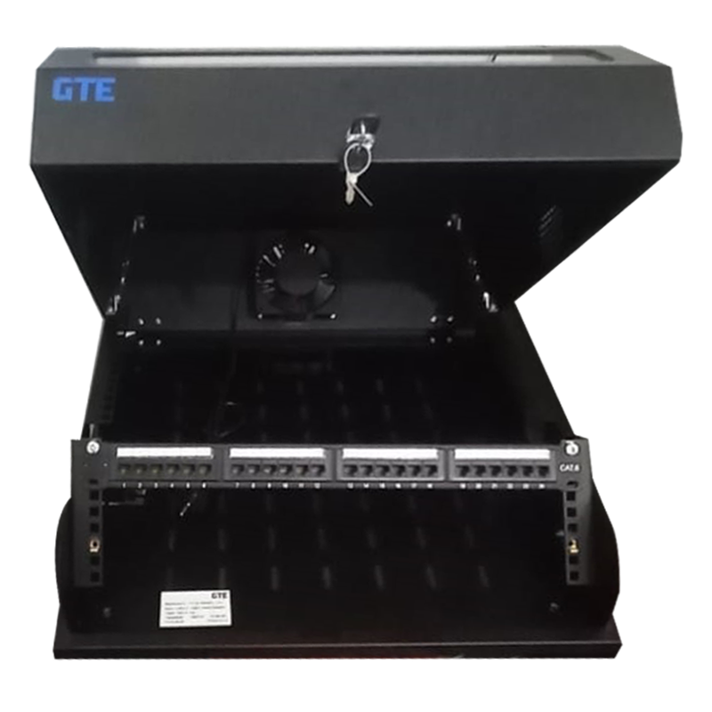 GTE – Slim wall-mounted enclosures are ideal for housing active and passive components. They are characterized by simple and time-saving installation. The modern design fits into any office or home. The enclosure has 2 separate installation options: A rotatable vertical 3U rail is attached to the front. Alternatively, this can also be positioned horizontally or at an angle. A horizontal 5U rail is attached to the rear (fixed), which can be used for passive network components, for example.